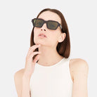 Diseñada para la colección Otoño/Invierno 2019, Caro presenta una silueta ancha y geométrica que fusiona el clasicismo italiano de los años 60 con la estética grunge de los 90. El modelo presenta un diseño redondeado con una estructura de acetato gruesa y resistente, terminales de patilla cuadrados y bordes angulares en la mitad inferior de la montura. Esta versión de Caro incluye lentes verde botella y acetato color habana moteado.