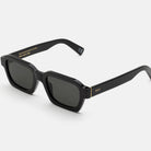 Diseñada para la colección Otoño/Invierno 2019, Caro presenta una silueta ancha y geométrica que fusiona el clasicismo italiano de los años 60 con la estética grunge de los 90. El modelo presenta un diseño redondeado con una estructura de acetato gruesa y resistente, terminales de patilla cuadrados y bordes angulares en la mitad inferior de la montura. Esta versión de Caro viene con lentes negras y acetato completamente negro.