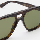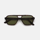 Acetato italiano de alta calidad en un intenso y oscuro acetato habana. Elegantes lentes verde botella Zeiss de base 4. Gafas de alta gama hechas a mano en Italia.