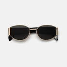 Metal dorado brillante de alta calidad y acetato italiano en un acetato negro atemporal. Lentes Zeiss extra black en base 2. Gafas de alta gama hechas a mano en Italia.
