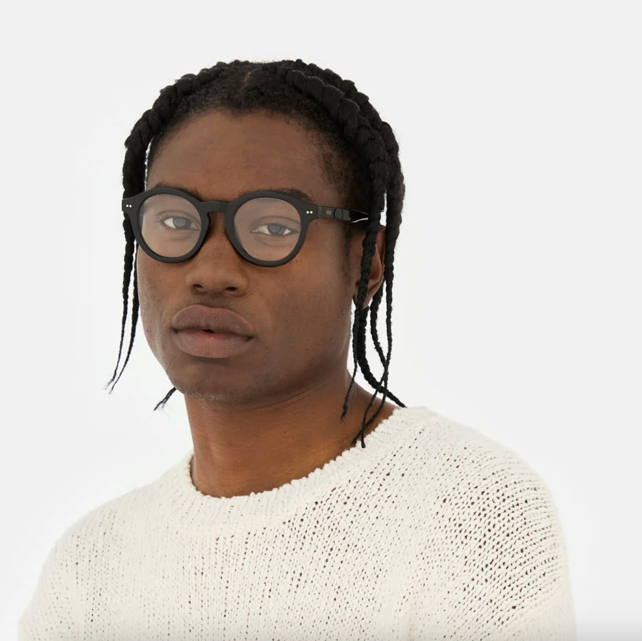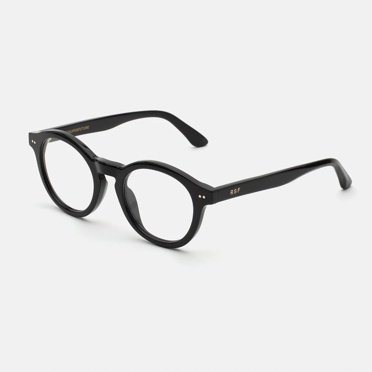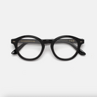 Acetato italiano de alta calidad en un clásico acetato negro. Lentes transparentes de base 4. Lentes graduadas no incluidas. Gafas premium diseñadas en Milán, Italia.