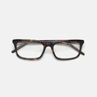 Acetato italiano de alta calidad en un intenso acetato Havana oscuro. Lentes transparentes de base 4. Lentes graduadas no incluidas. Gafas de alta gama diseñadas en Milán, Italia.