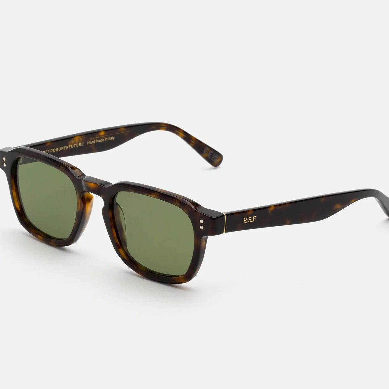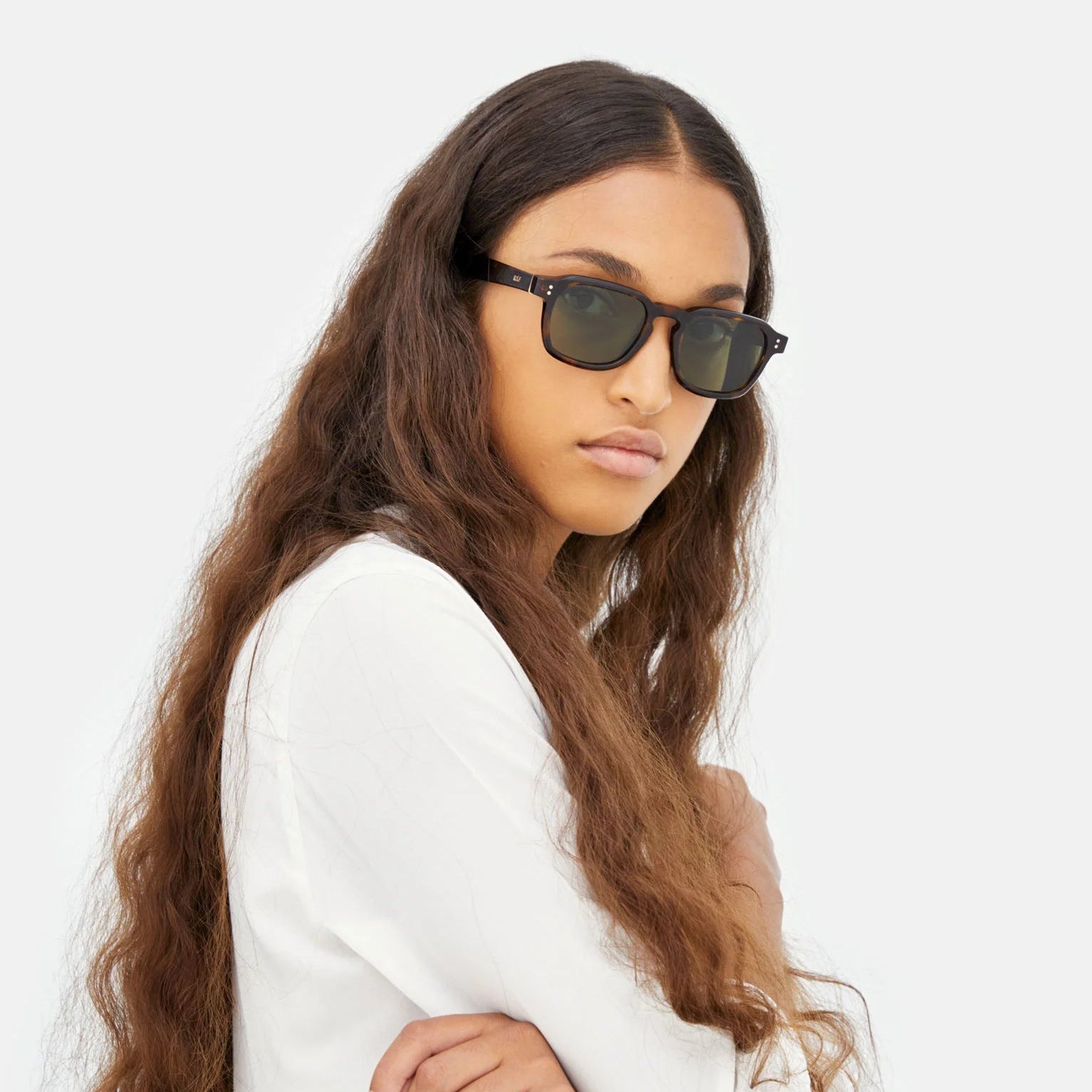 Diseñada para la colección Primavera/Verano 2019, Luce es una silueta icónica que combina referencias vintage con un toque urbano. Caracterizada por un perfil ancho y horizontal, con terminales angulares en las patillas, aros gruesos y una línea superior cincelada, Luce es una versión renovada de las monturas clásicas para uso diario. Este modelo presenta un acetato habana suave con lentes verde botella. La caja incluye un estuche semirrígido y un paño de limpieza.