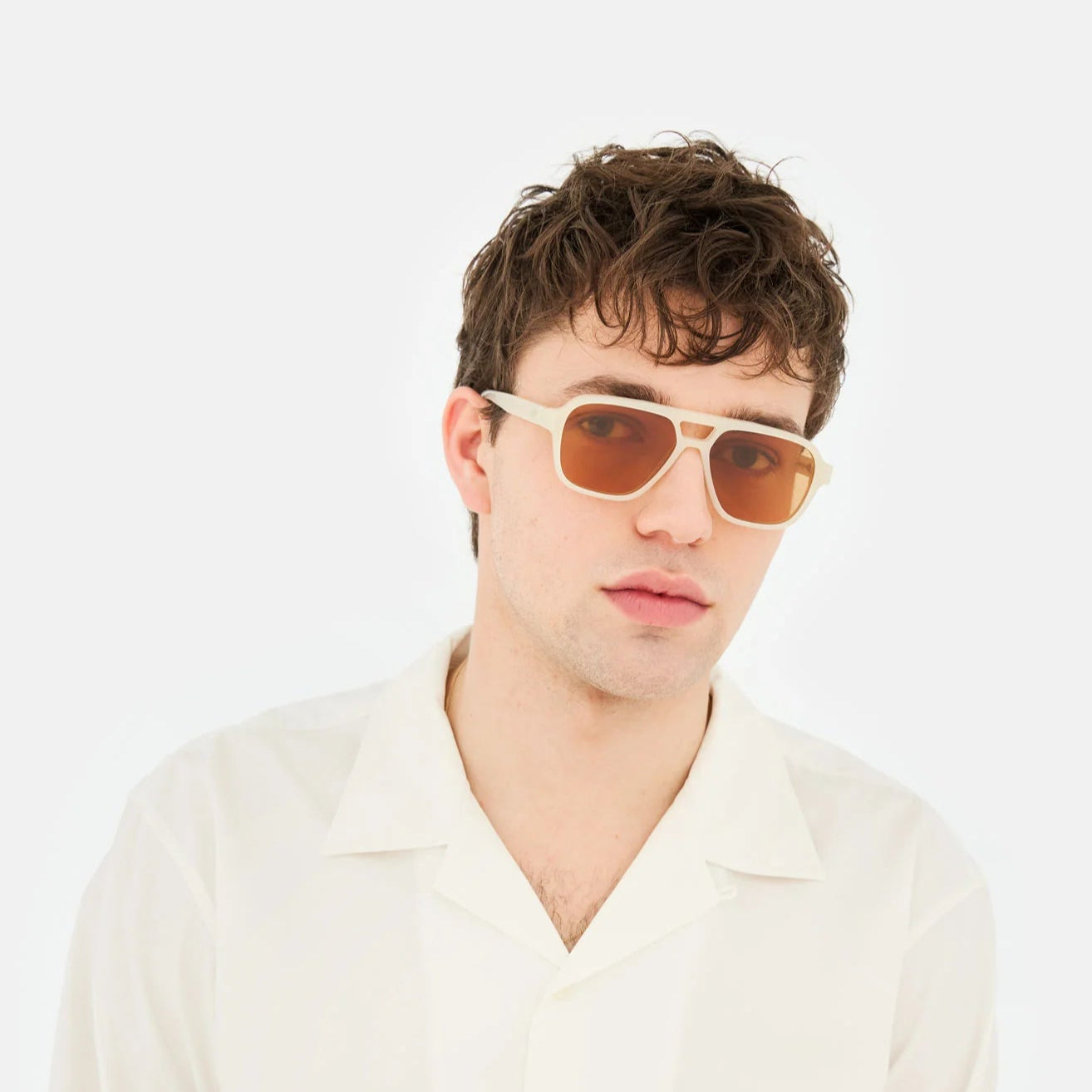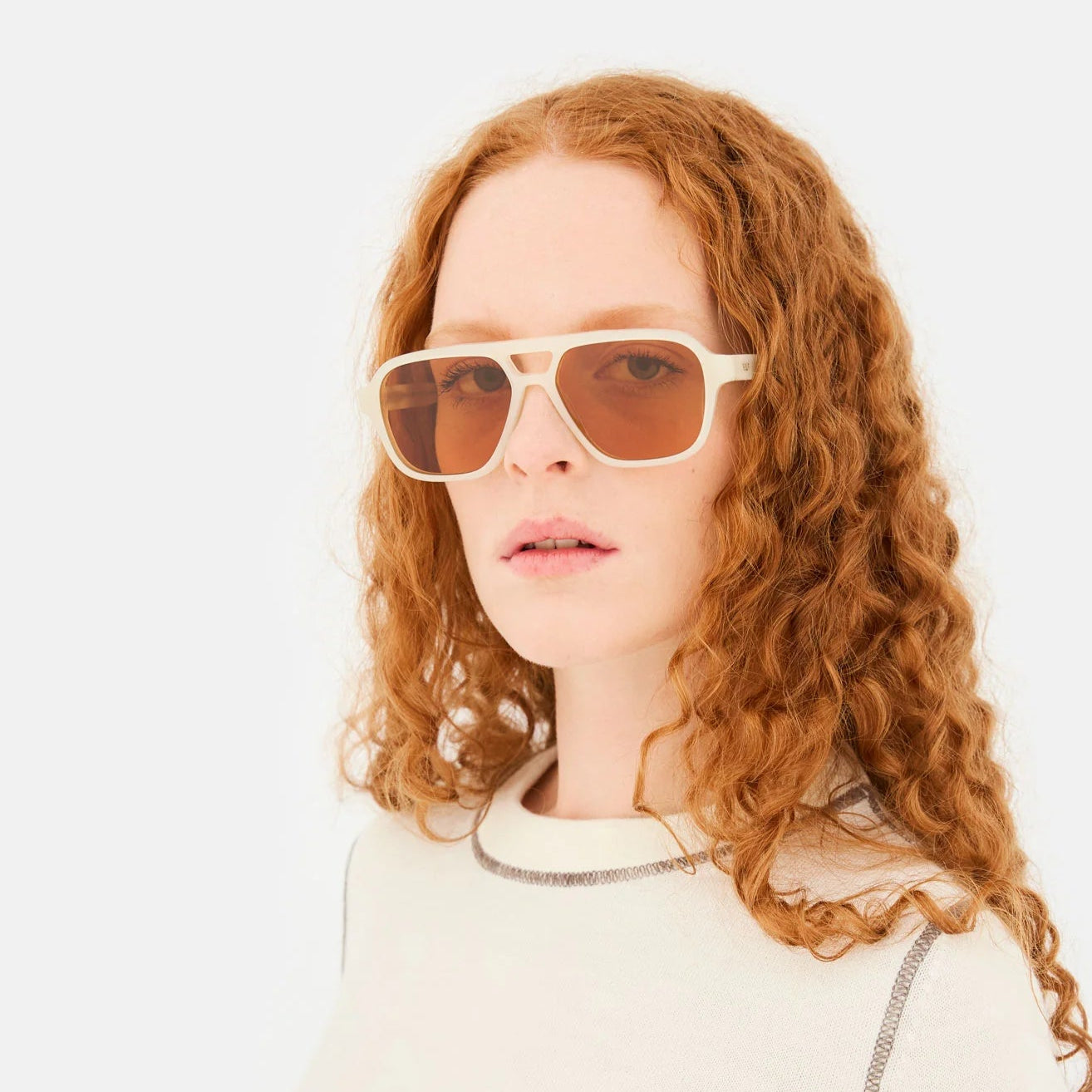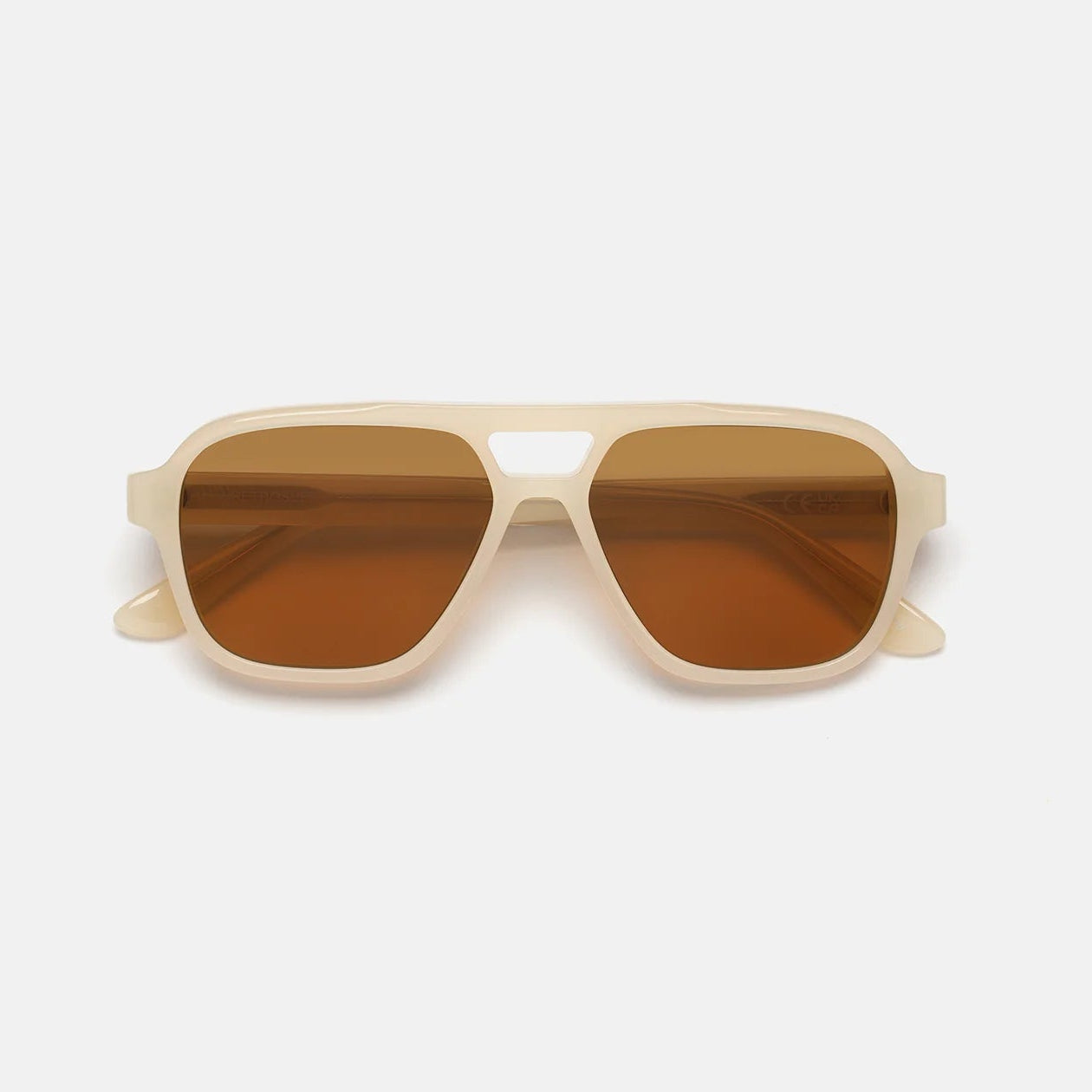 Acetato italiano de alta calidad en un acetato suave y cremoso. Lentes Zeiss marrones refinadas de base 4. Gafas de alta gama hechas a mano en Italia.