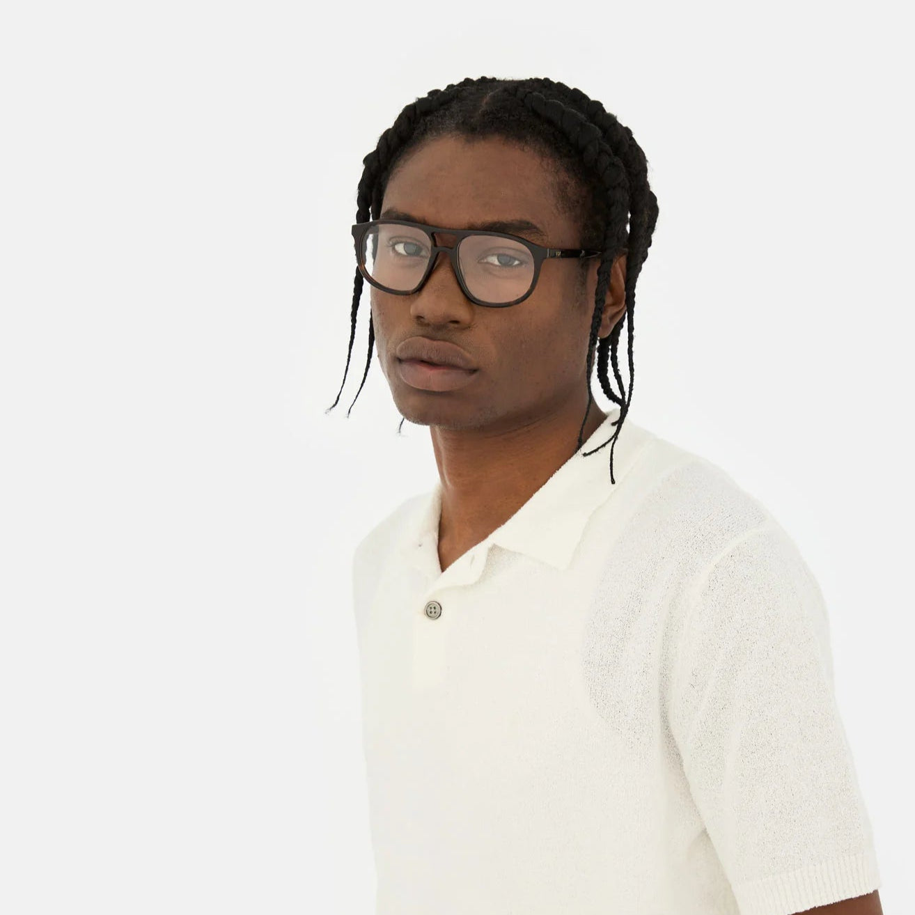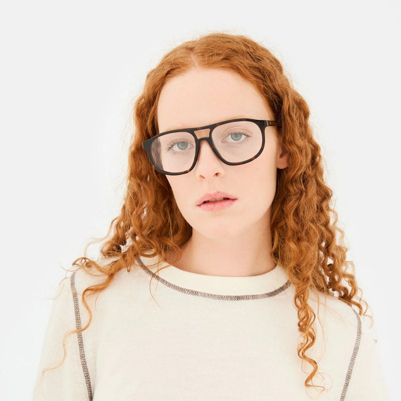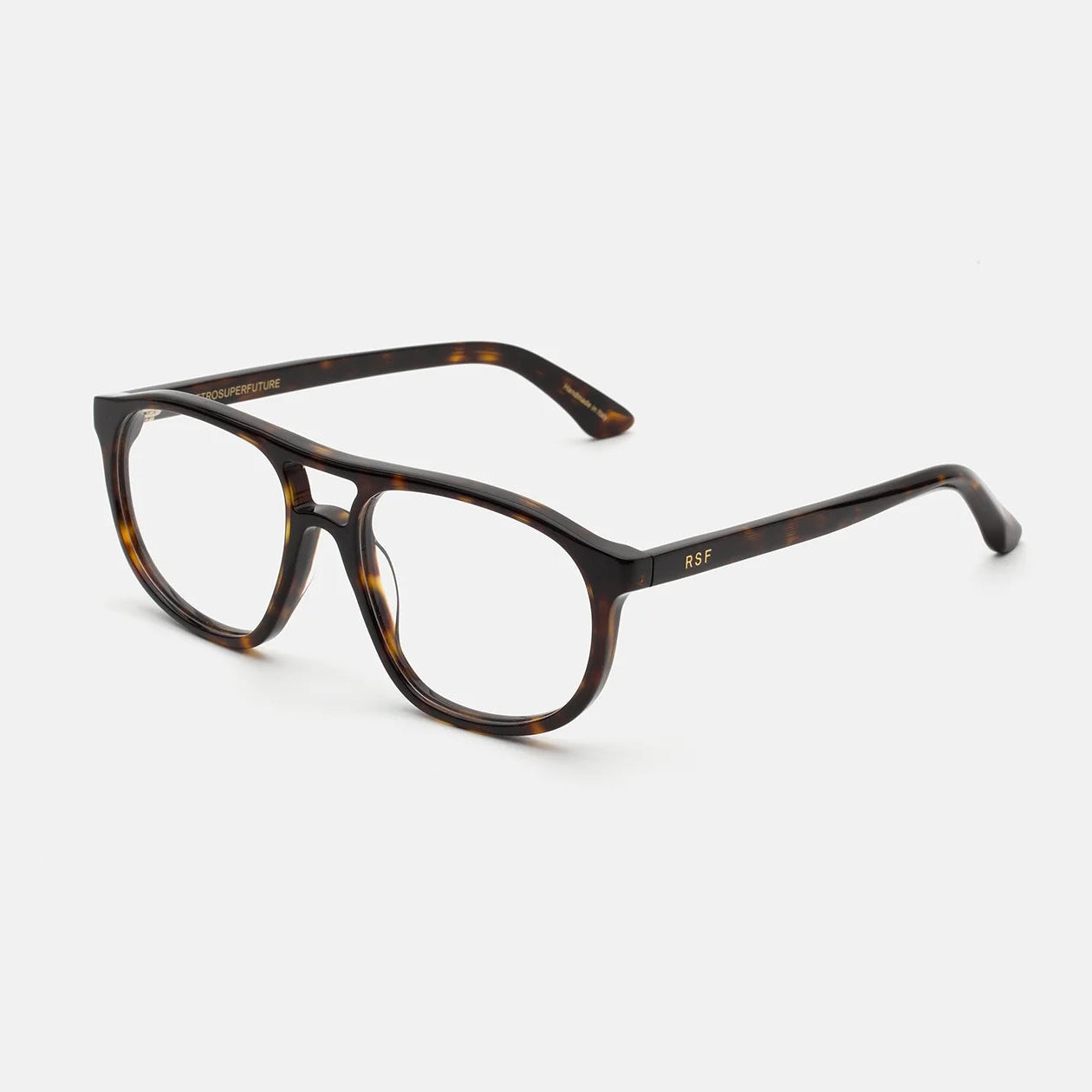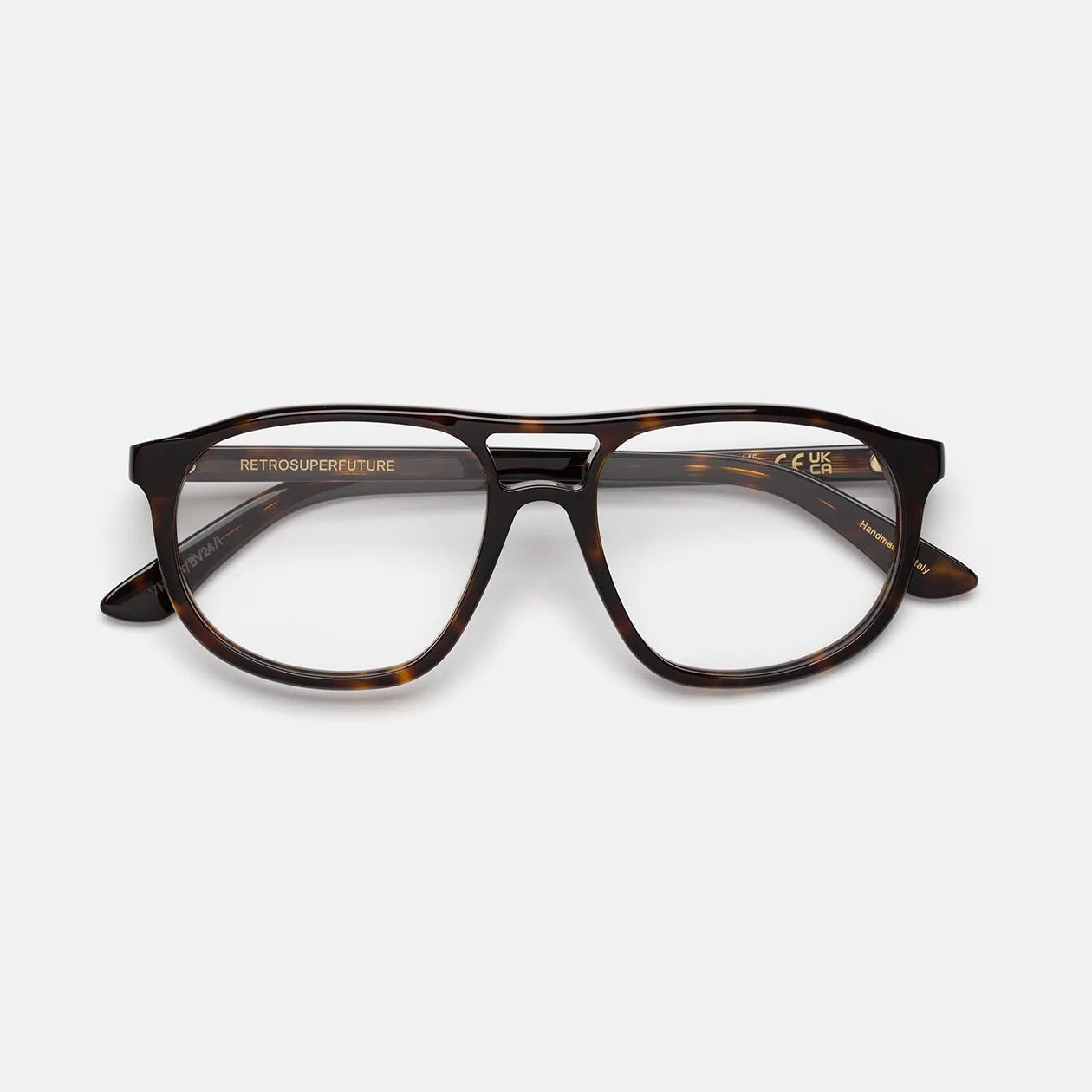 Acetato italiano de alta calidad en un intenso tono habana oscuro. Lentes transparentes de montaje en la base 4. Lentes graduadas no incluidas. Gafas de alta gama hechas a mano en Italia.