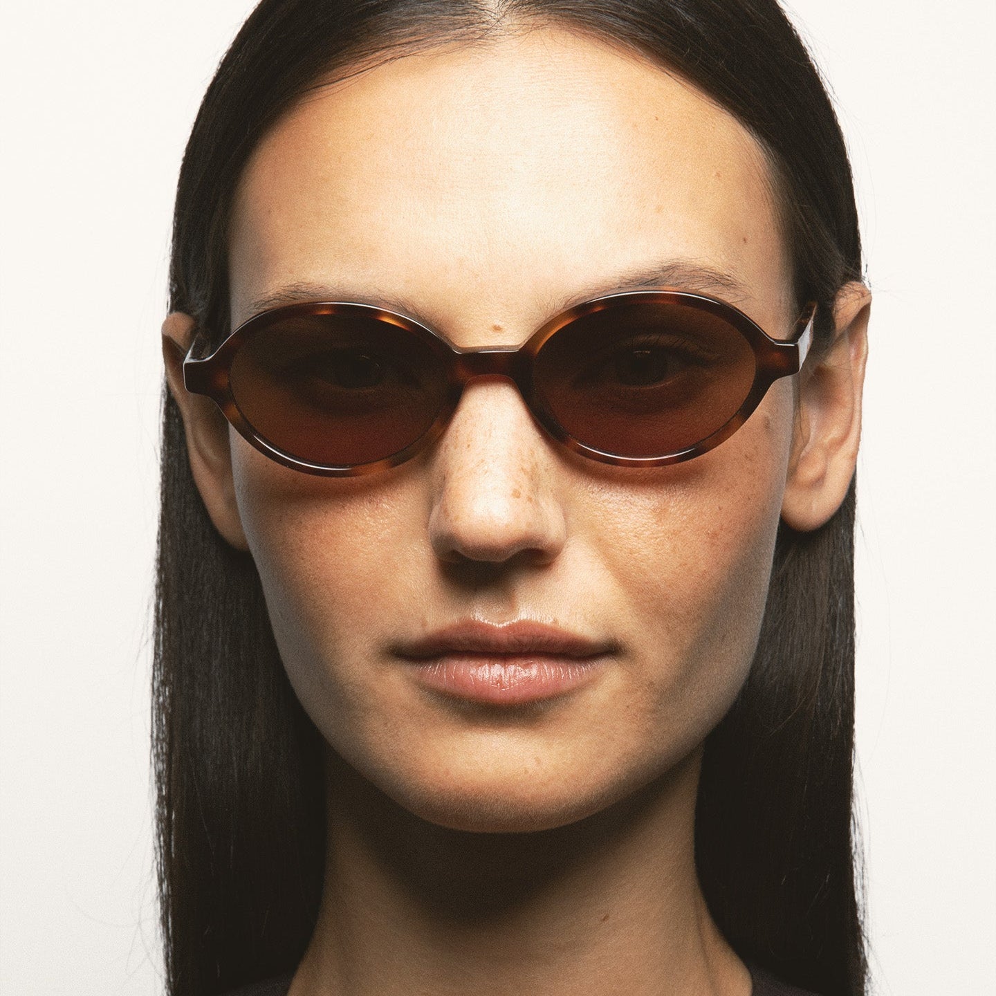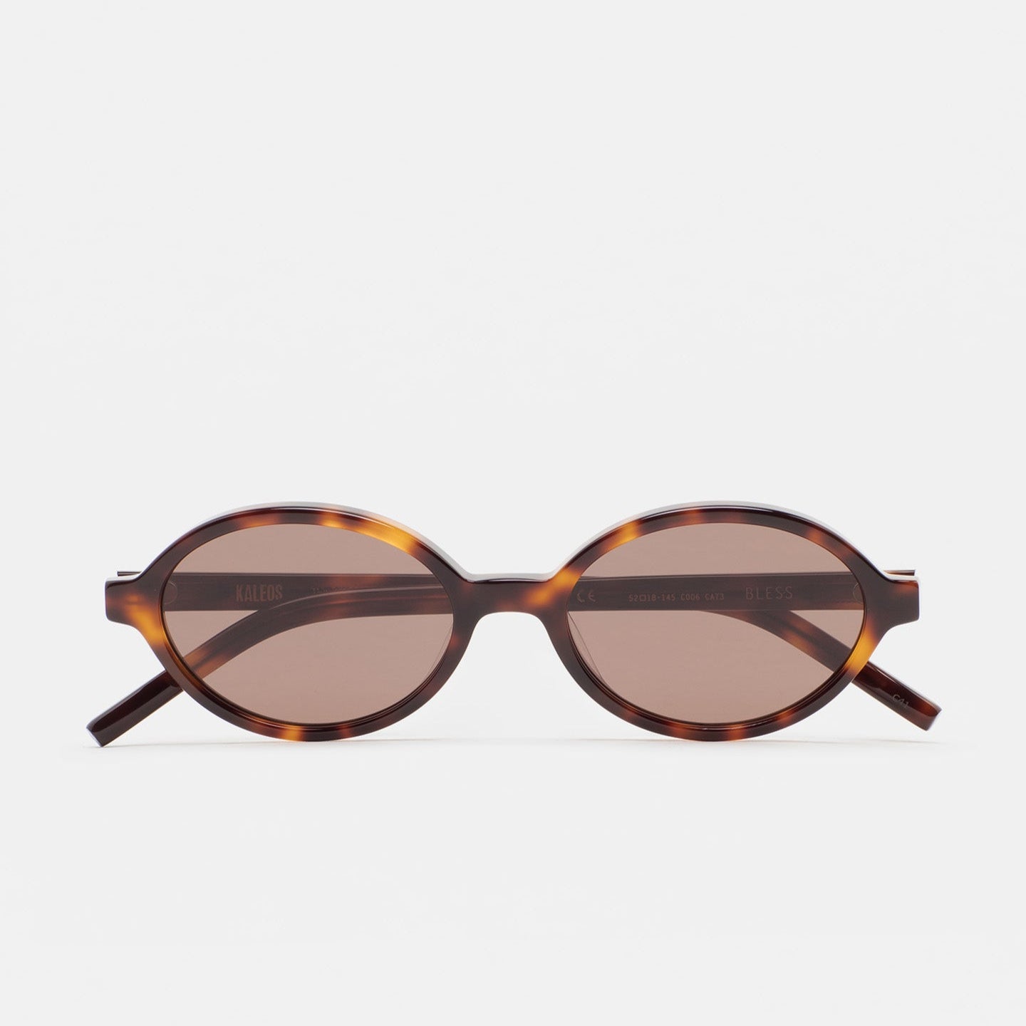 Gafa de sol de forma ovalada. Frontal y varillas de acetato havana marrón. Lente marrón degradada base 2 con 100% protección UV y tratamiento antirreflejante. Lente Categoría 3. Plaquetas de acetato incorporadas. Hecha a mano.