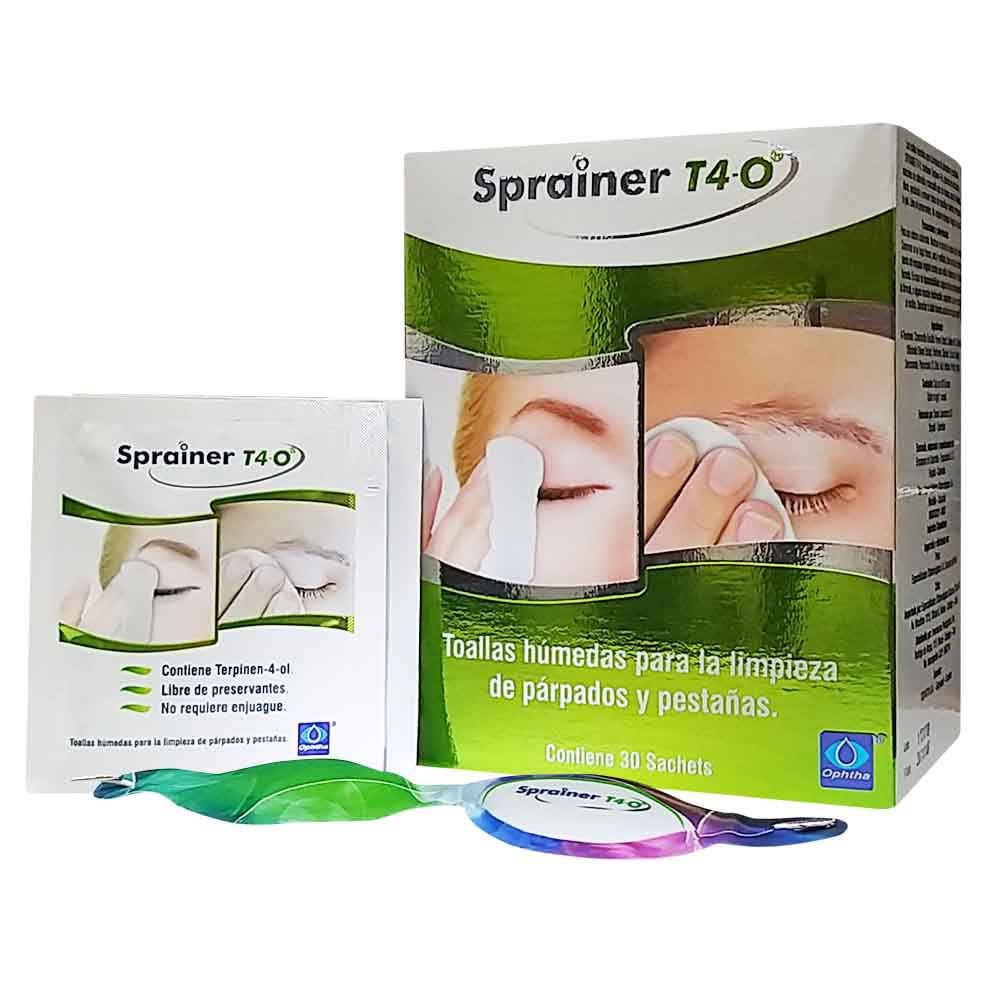 Las toallitas húmedas para la limpieza de párpados y pestañas Sprainer T4-O contienen terpinen-4-ol, el componente activo del aceite del árbol de te, además de extractos naturales de caléndula y manzanilla que son ideales para la limpieza diaria, ayudando a remover detritus, microorganismos y restos de maquillaje mientras refrescan la delicada piel de los párpados. Indicado para el tramamiento de blefaritis. Libre de preservantes. No requiere enjuague luego de su uso.